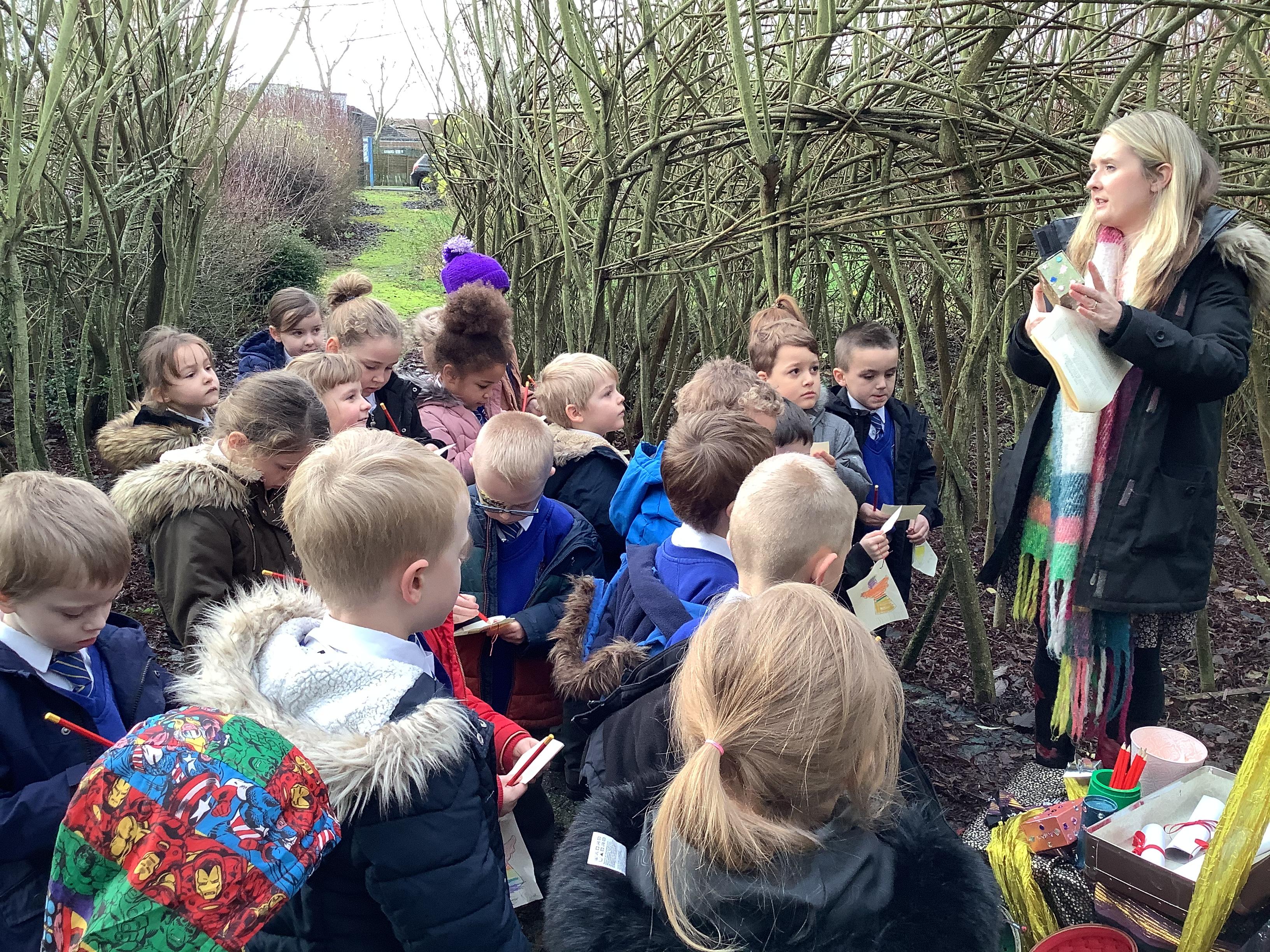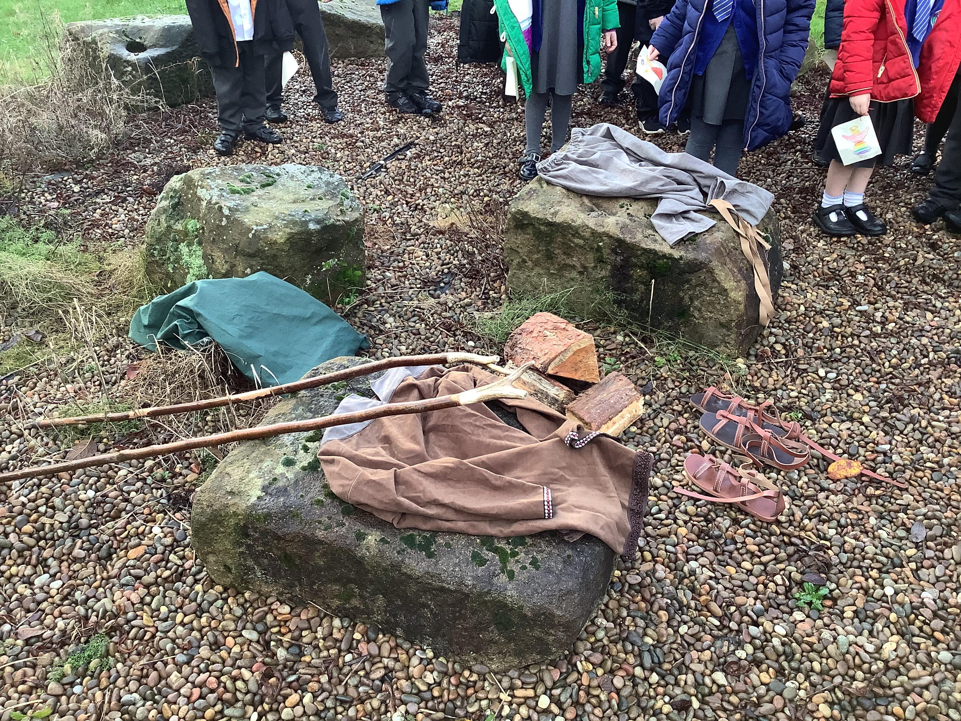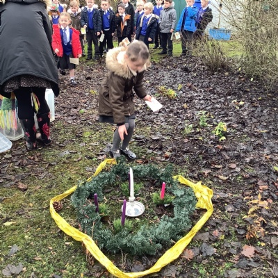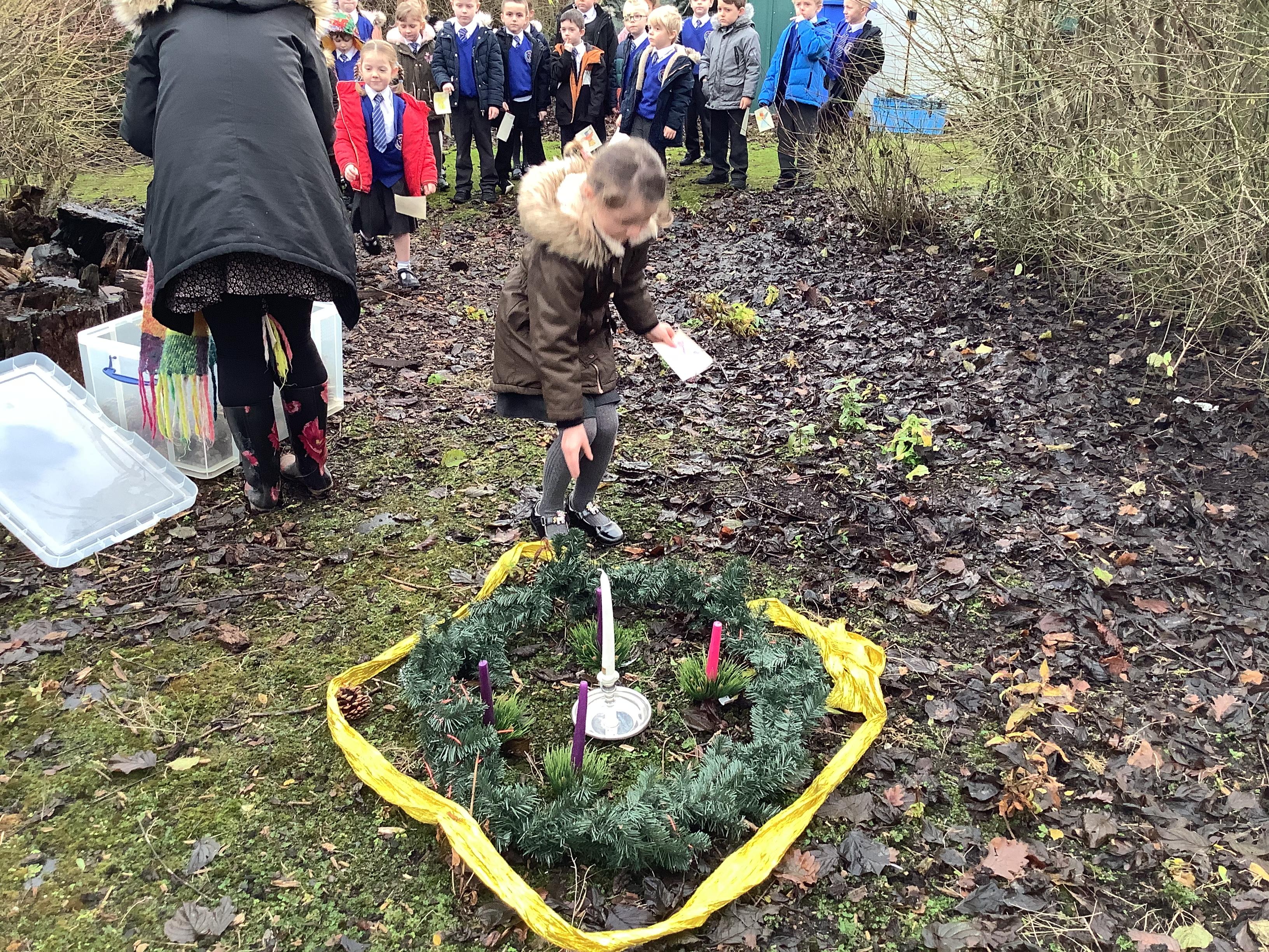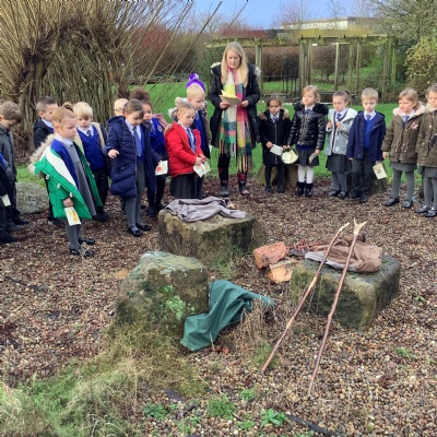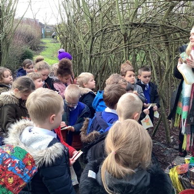 At Christmas we used our nature garden to follow the story of the First Christmas at our Christmas trail. We walked in the footsteps of the special people, chosen by God to be a part of that story and listened to their scripture. Before finally placing our gifts at the foot of the crib for Jesus, the precious gift God sent to guide us.