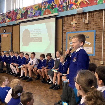 Throughout the school year each class hosts a stay and pray. Parents are invited to attend and share our prayer and liturgy which is led by the children. Parents then stay after and enjoy a coffee morning with their child and our school community whilst raising money for a charity chosen by the children.